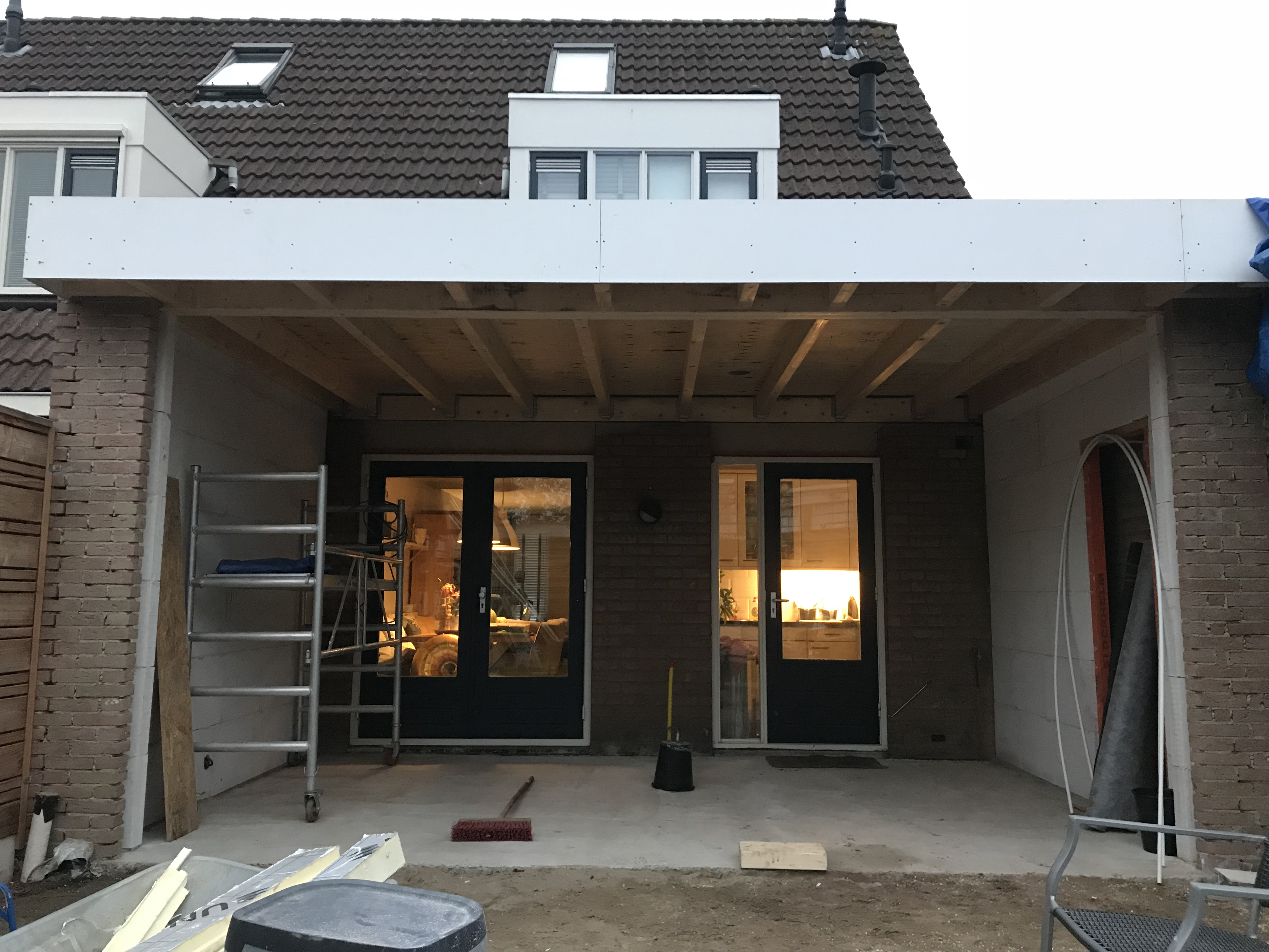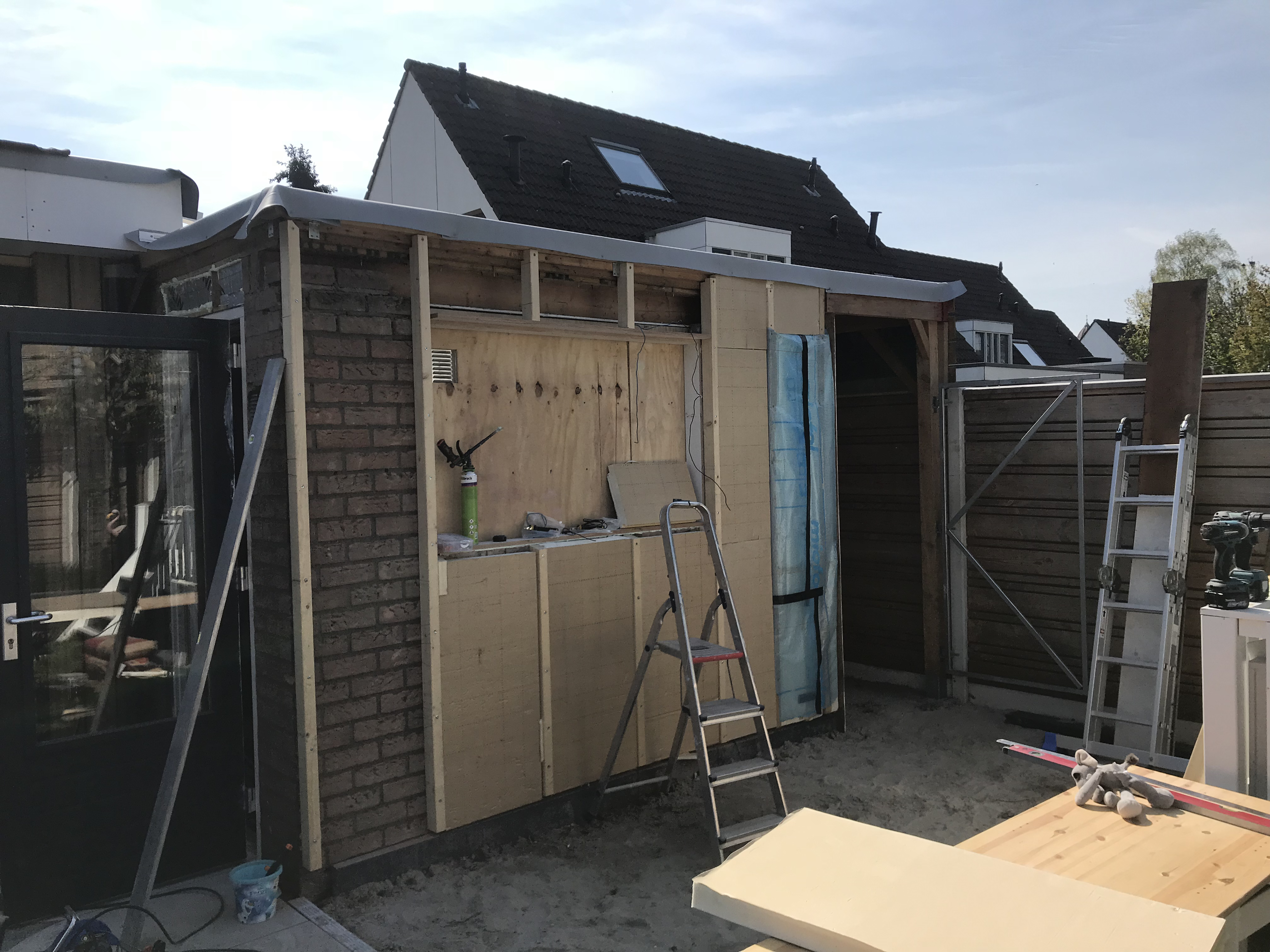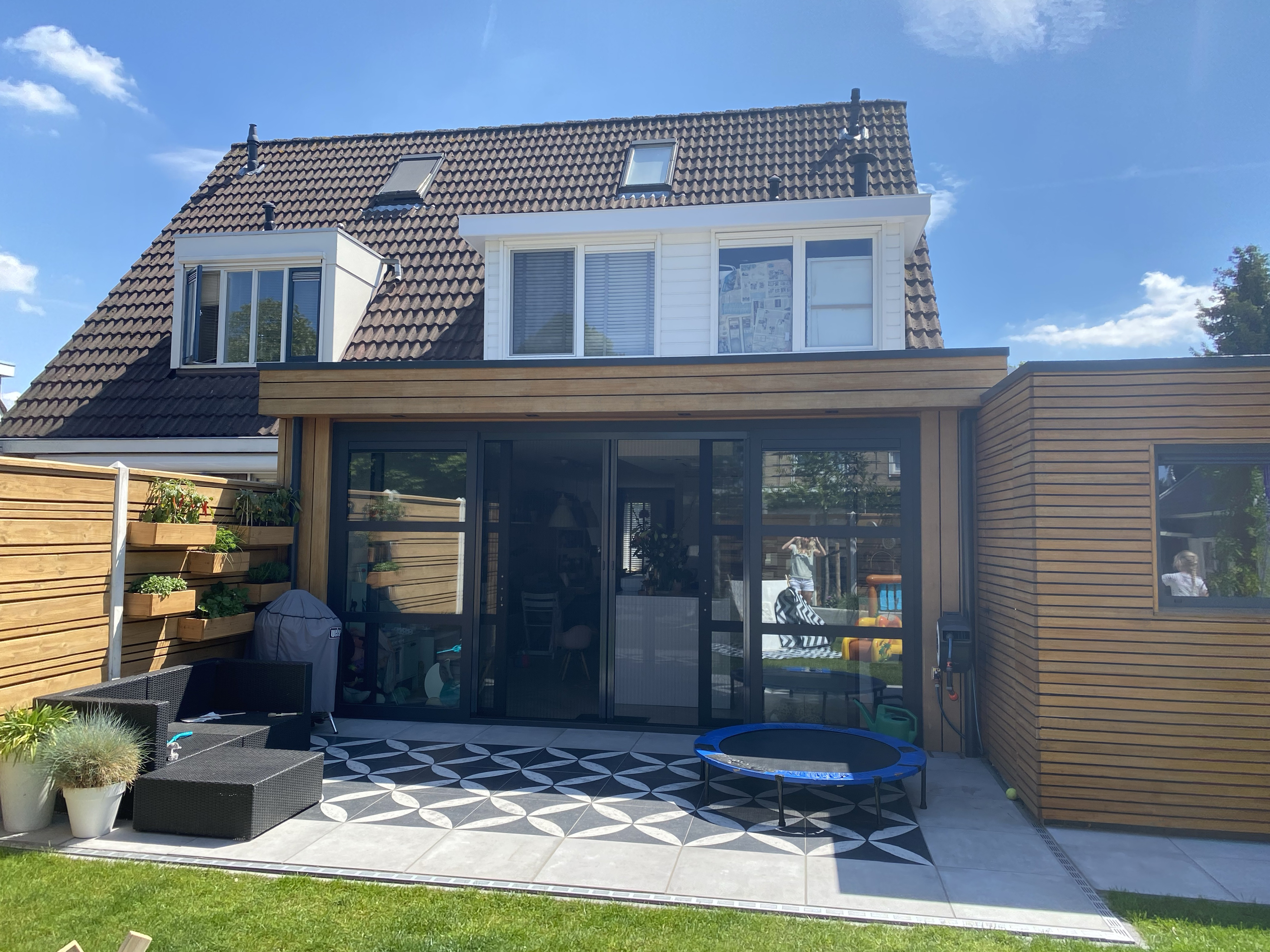 Hier hebben we samen met Klusbedrijf Jhon een volledige aanbouw geplaatst, inclusief fundering met vloer en vorstrand, pir9 isolatie, pvc dakbedekking, aluminum schuifpui en gevelbekleding van Ayous (thermisch gemodificeerd naaldhout). Daarbij ook de bestaande garage geisoleerd, inclusief dak en een schuifdeur gemaakt vanuit de nieuwe keuken naar de garage wat nu mancave is. Zie hiervoor ook het project Keuken.