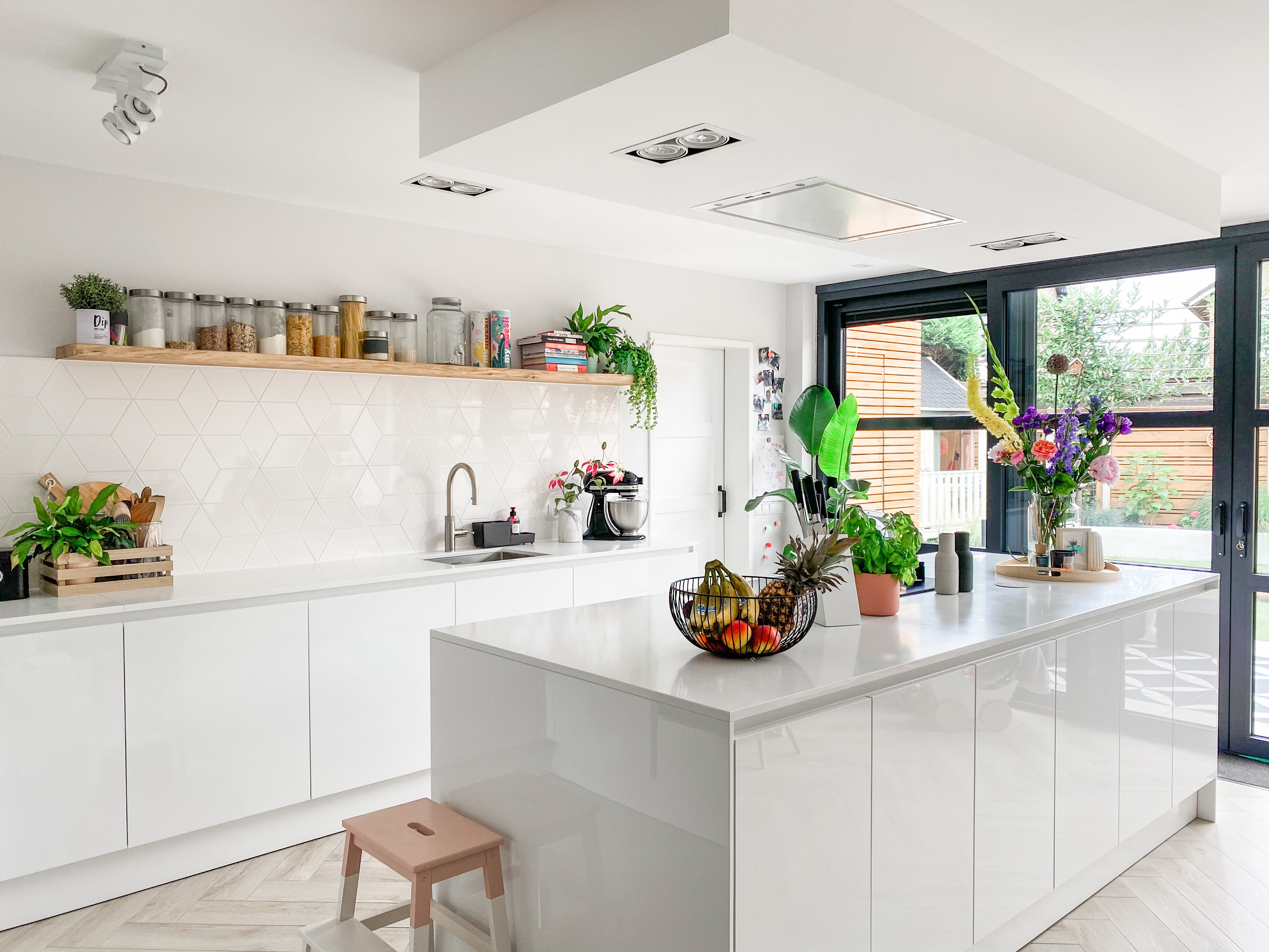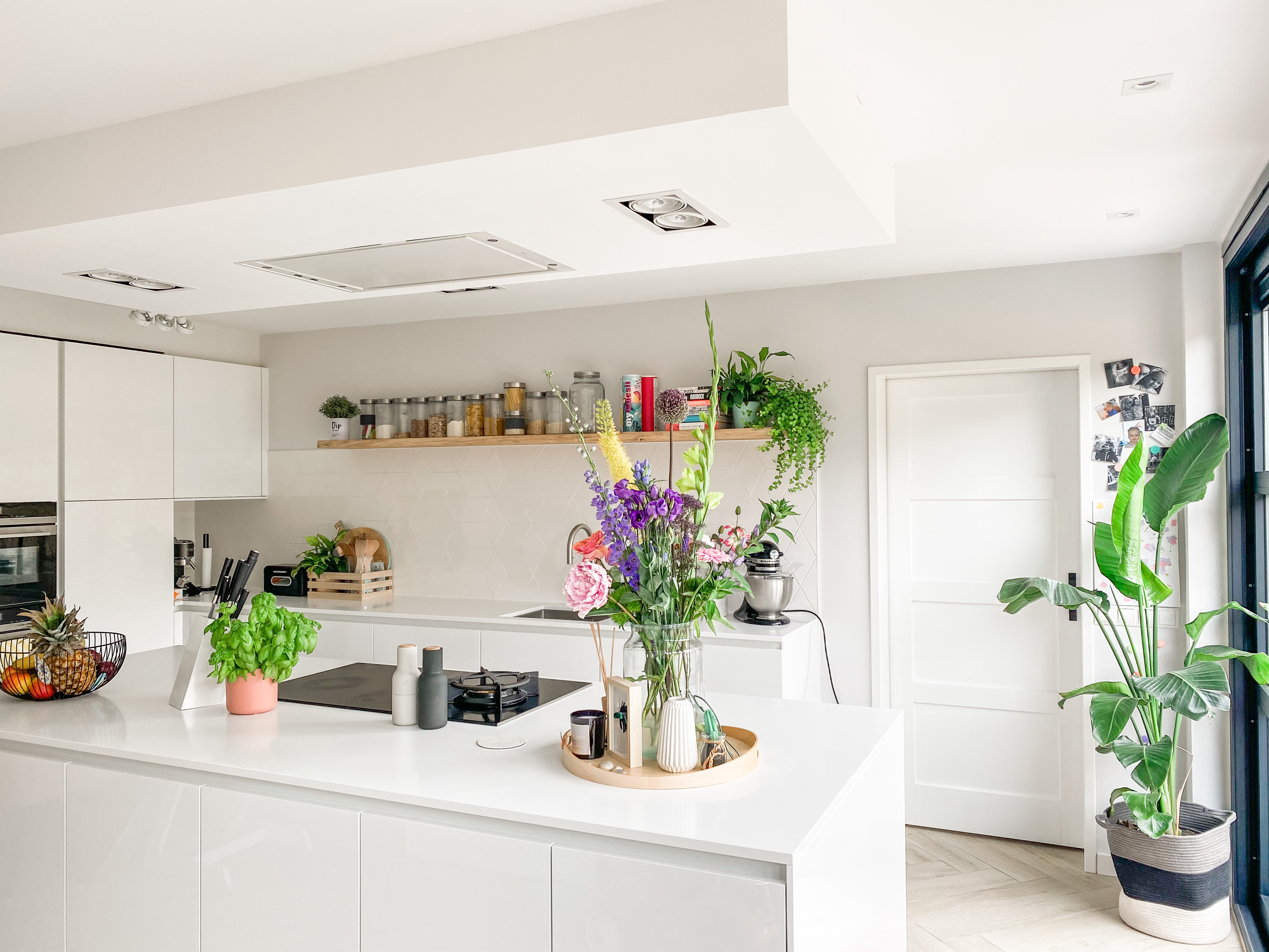 Volledig nieuwe keuken in aanbouw (zie project aanbouw), inclusief kookeiland, gas/electra, wandtegels, AR111 12V led spots incl dimmers, koof voor afzuigunit, koof voor keukenkasten incl koel/vries/oven/combi-steamer, schuifdeur in spouw incl kozijn tbv mancave, schuifpui antraciet aluminium (Belisol). Keuken plaatsing door Keukenmaxx.