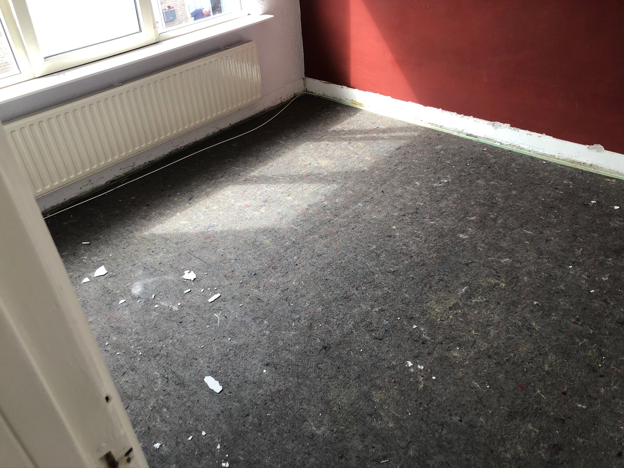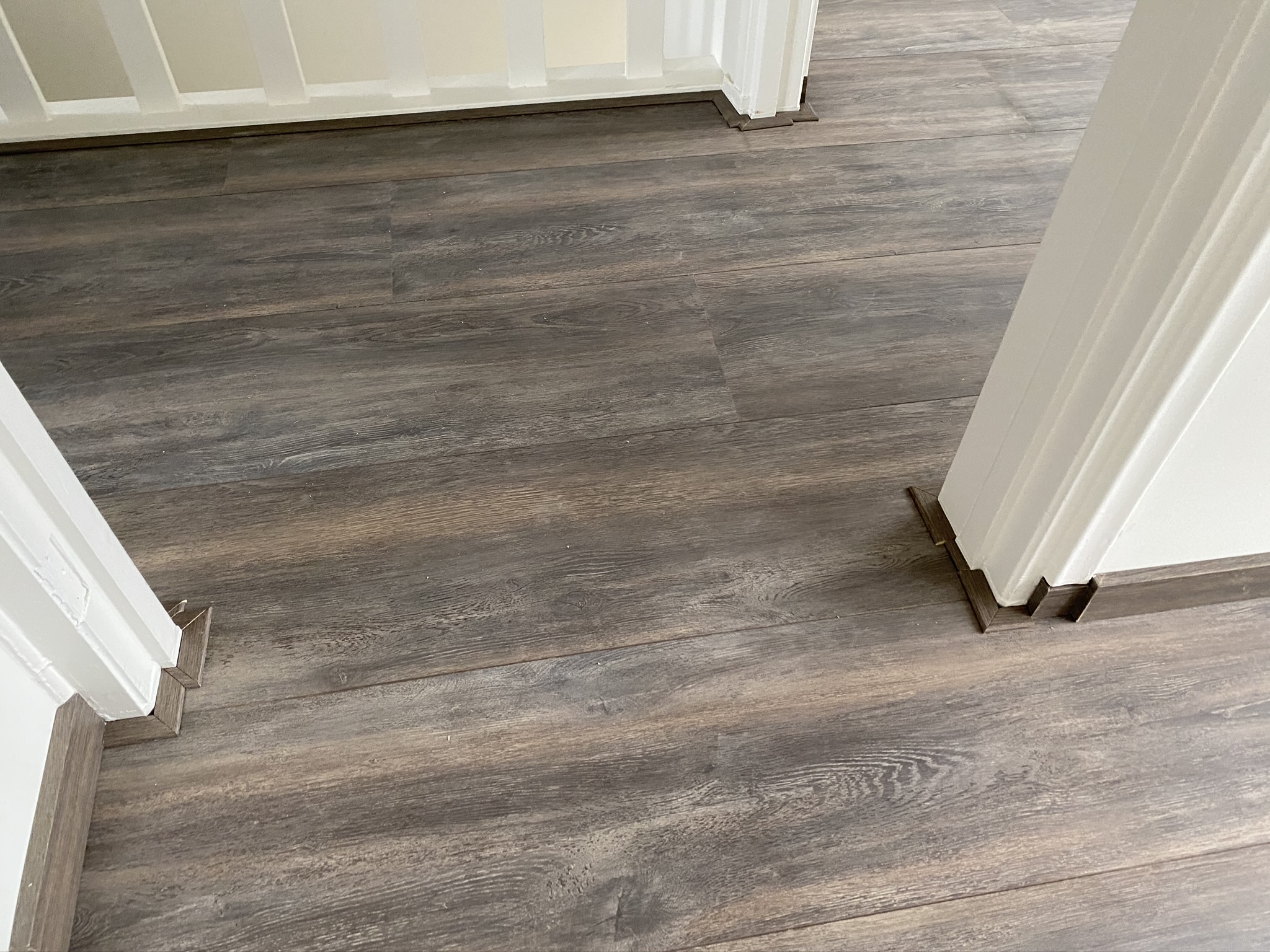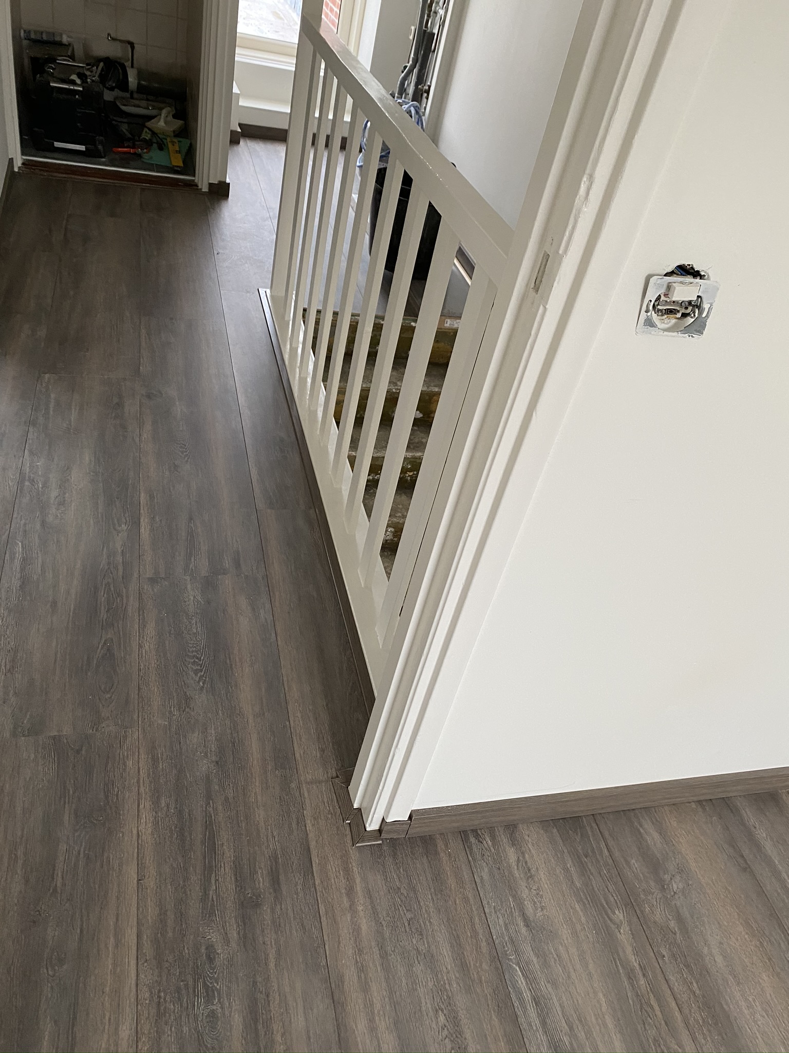 Hier heb ik de volledige bovenverdieping voorzien van ondervloer, laminaat en plinten.
