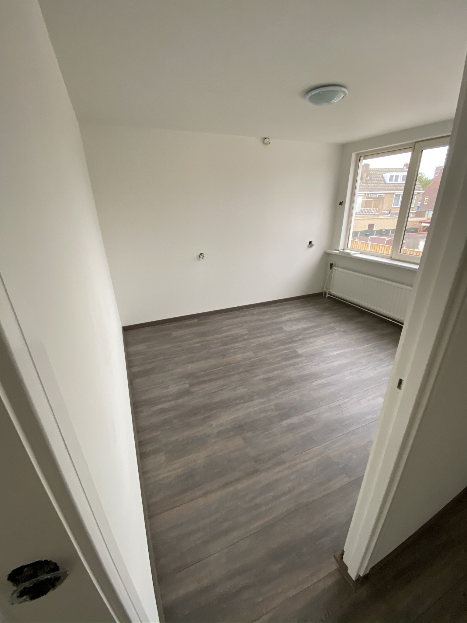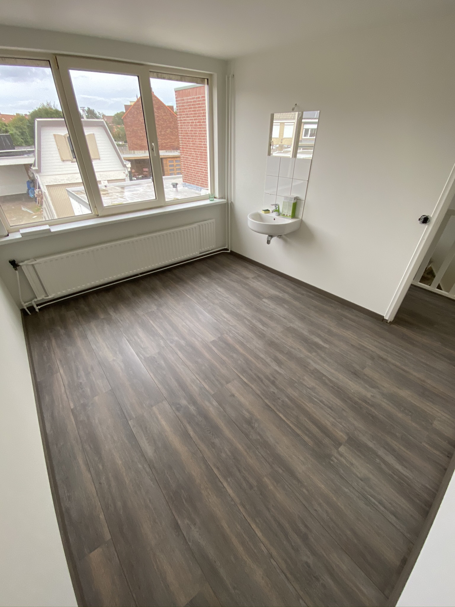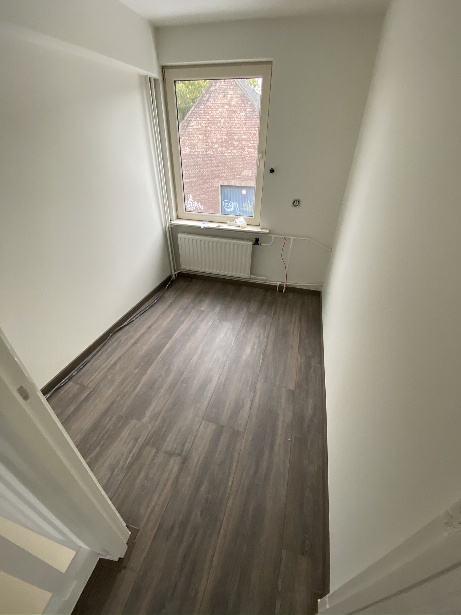 Hier heb ik de volledige bovenverdieping voorzien van ondervloer, laminaat en plinten.