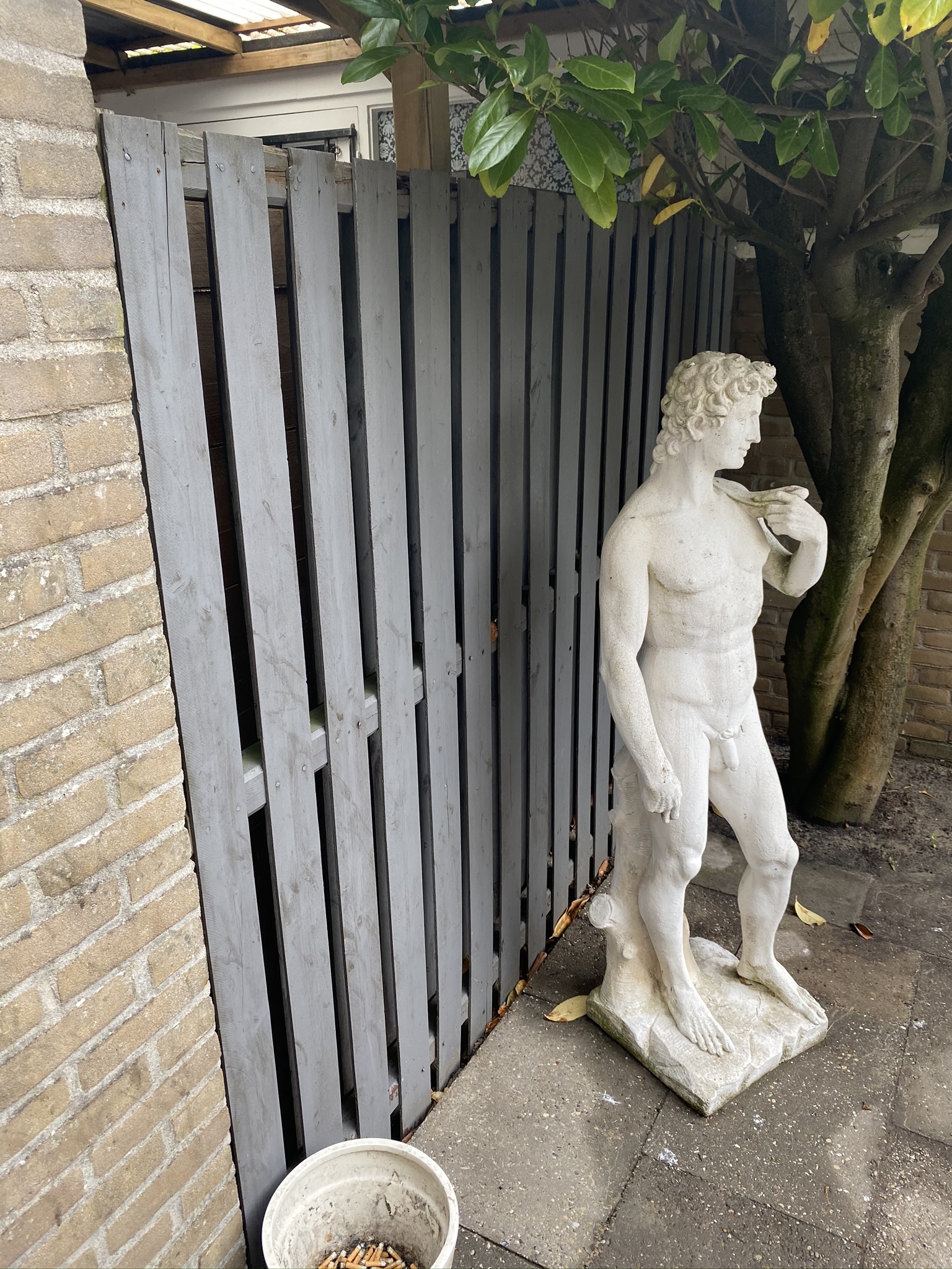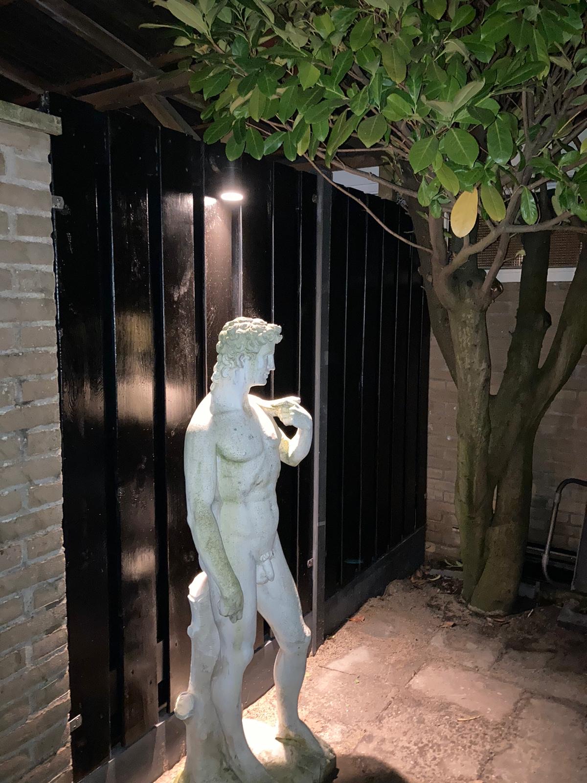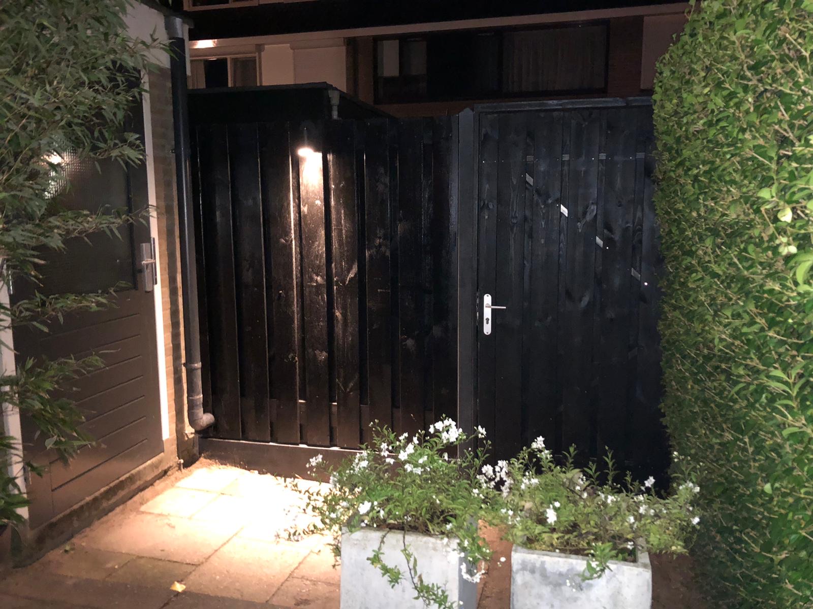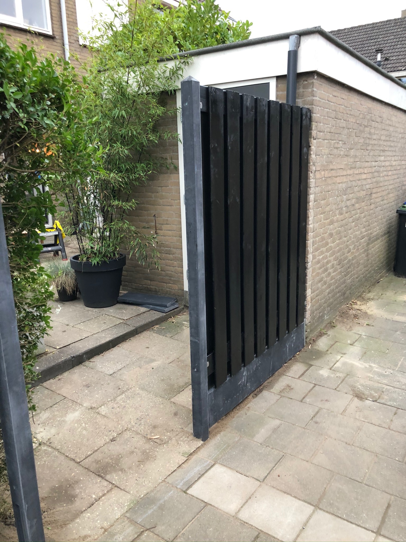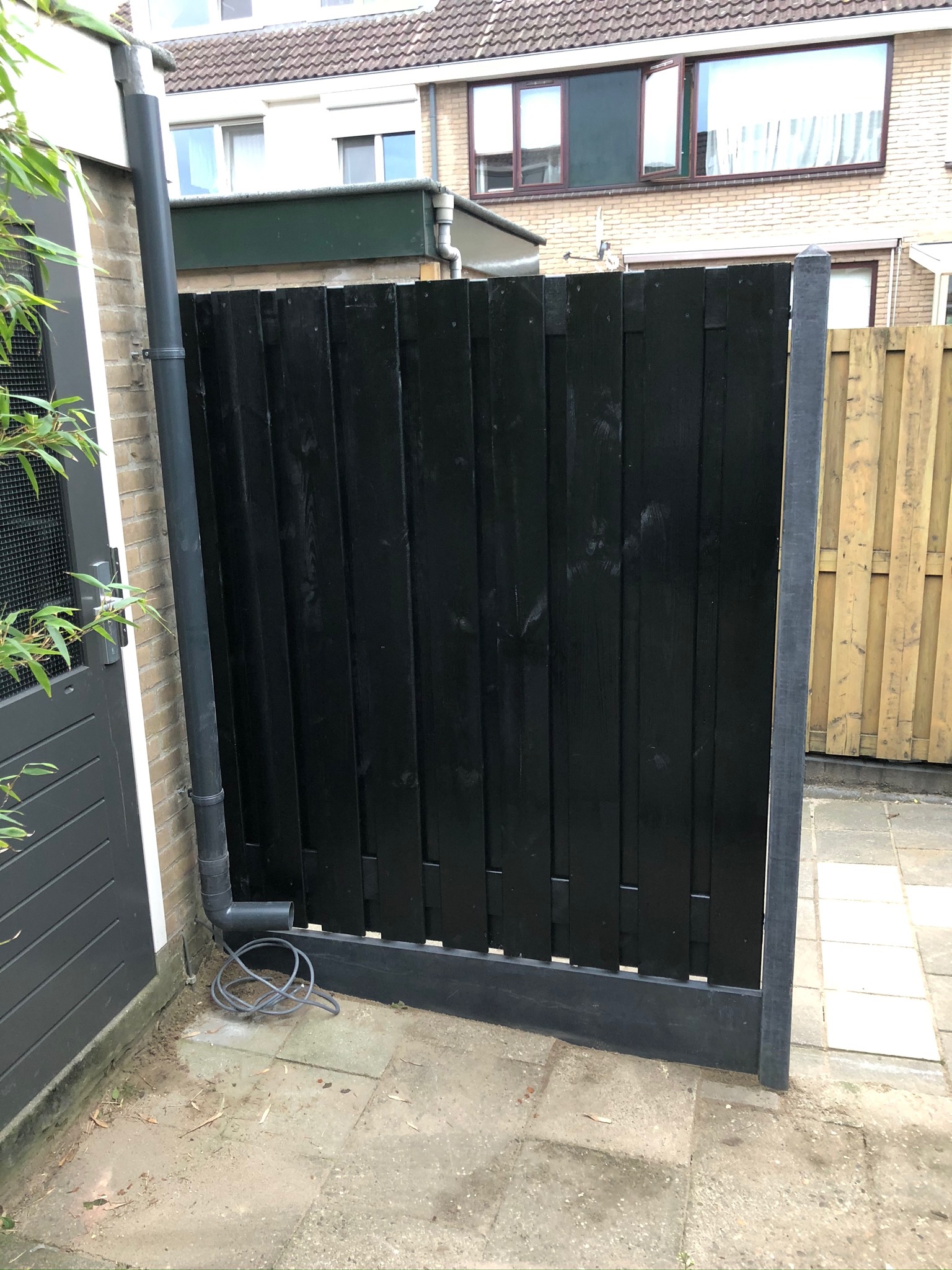 In deze tuin heb ik de schuttingpanelen en poort vervangen. De nieuwe schuttingpanelen zijn geplaatst op betonnenonderplaten en bevestigd aan betonnen palen. Daarnaast heb ik verlichting aangebracht in de schuttingpanelen en de oude lekke regenpijp vervangen.